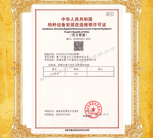 廈門隆興化工機械有限公司成立于2001年5月,占地面積30000平方米,擁有生產(chǎn)車間面積10000平方米及相關(guān)配套的辦公場所3000平方米,其中下料場所1000平方米,不銹鋼制作場所2000平方米,ASME產(chǎn)品制作區(qū)域1200平方米,無損曝光室30平方米。公司有職工135人,擁有專業(yè)的技術(shù)人員和管理人員36人。公司主要從事設(shè)計、制造A2級覆蓋D類壓力容器...